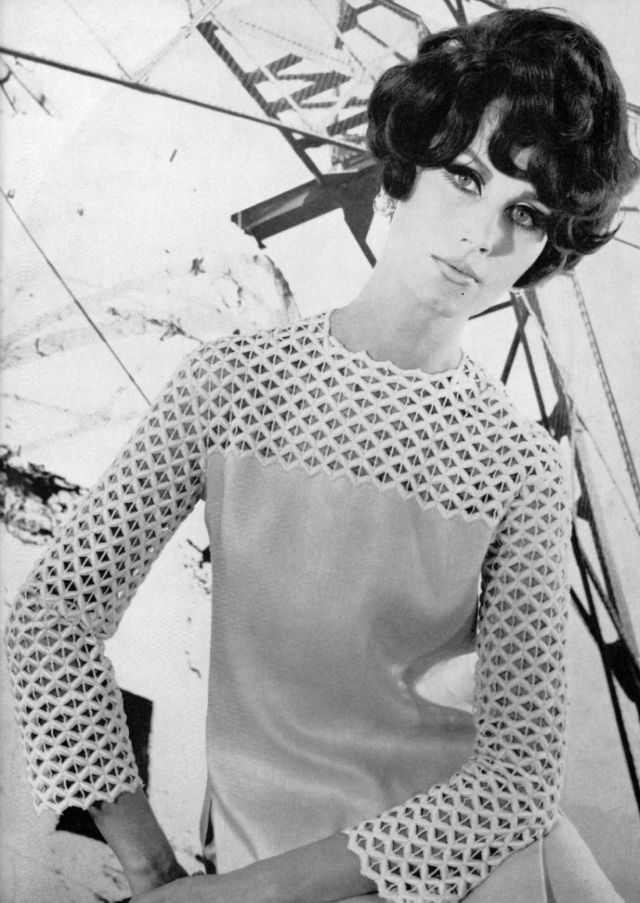 | Bettina Lauer in embroidered mesh top by Marc Bohan for Christian Dior, photo by Joseph Grove, 1966 |