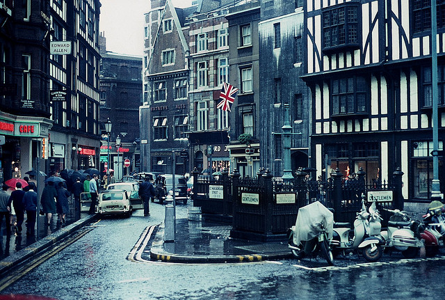 Some of these photos show the street in it's glory days in the late Sixties, including the polka dotted Mens boutique Lord John. Other places snapped around London include Portobello Road, Piccadilly Circus and some early hippies hanging out in Trafalgar Square.