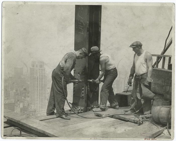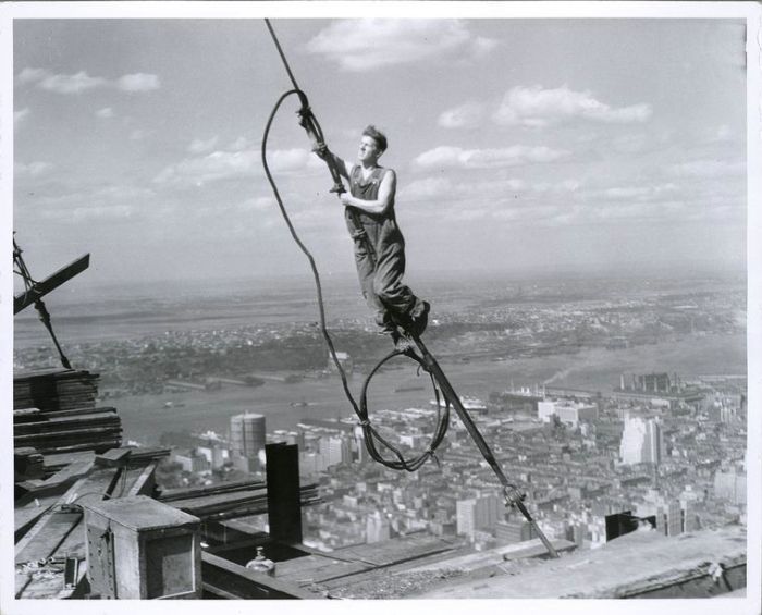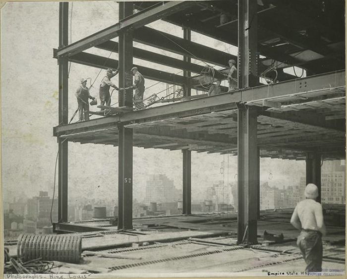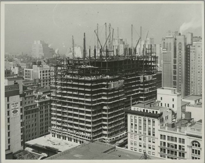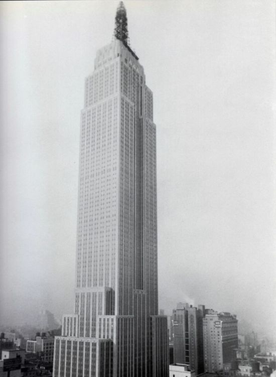 The Empire State Building is a 102-story landmark skyscraper and American cultural icon in New York City at the intersection of Fifth Avenue and West 34th Street. It has a roof height of 1,250 feet (381 meters), and with its antenna spire included, it stands a total of 1,454 ft (443.2 m) high. Its name is derived from the nickname for New York, the Empire State. It stood as the world's tallest building for 40 years, from its completion in 1931 until construction of the World Trade Center's North Tower was completed in 1972. Following the destruction of the World Trade Center in 2001, the Empire State Building once again became the tallest building in New York.