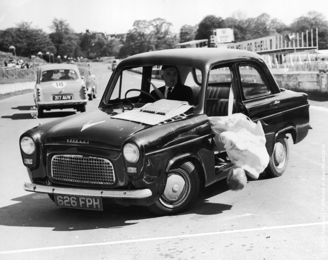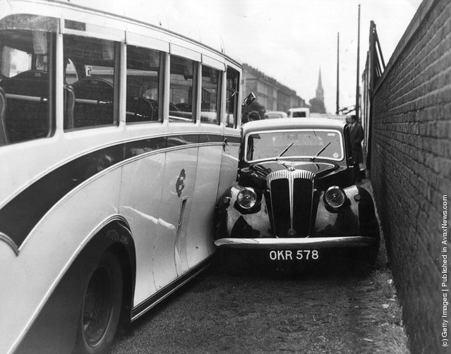 | A boy stands on a coal scuttle to peer over the wall of a sports stadium in Berlin, 8th January 1951. (Photo by Keystone Features/Hulton Archive/Getty Images) |
