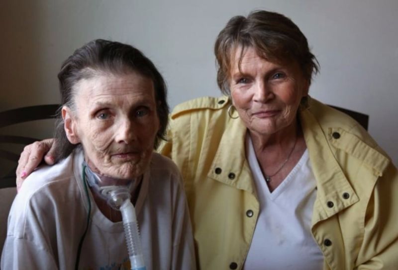 | Sue Ellen, left, and her sister RaeAnn Mills were reunited at Chalifoux's home in Hammond. |