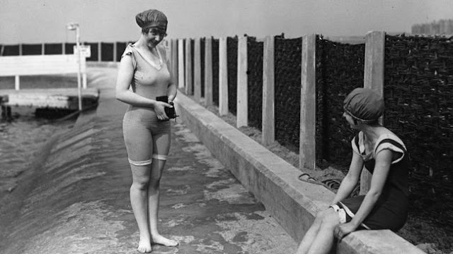 By the early 1900s, beach resorts were becoming a popular destination. But water activities such as swimming and diving were a burden due to the bulky Victorian-style swimsuits, especially for the women, the magazine reports. Thus, by the 1920s, fitted swimwear that modestly conformed to the body became a part of beach fashion. Susan Sessions Rugh, an American history professor at