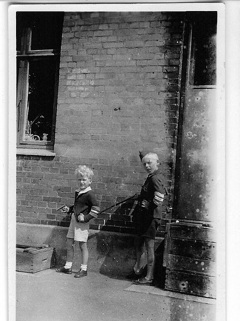 | Children playing freedom fighters. Odinsgade, Copenhagen. May 1945. |