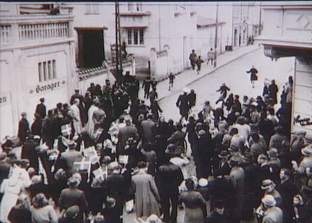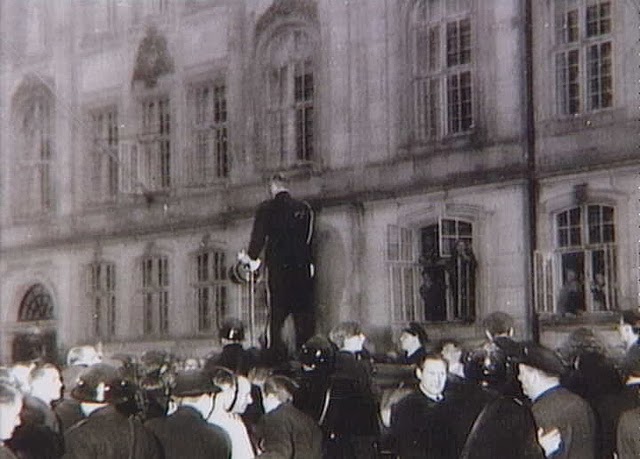 | People running, The Central Station in Aarhus. 26th August 1943. |