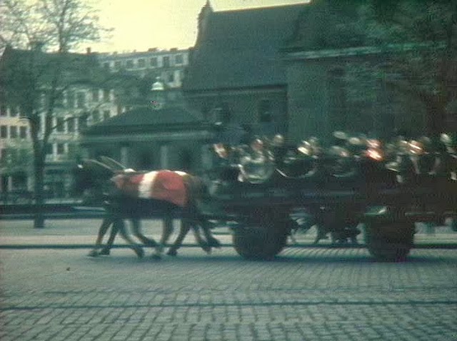 | Barrow with flags (English/British) in Copenhagen. May 1945. |