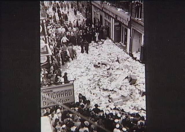 | People are burning papers from Dagmarhus (The German head quarter during the occupation). 6th May 1945. |