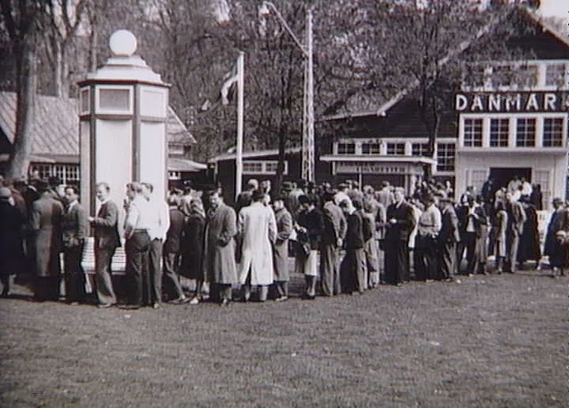 | Queue outside the cigarette shop at Bakken (amusement park) in Klampenborg. Summer 1945. |