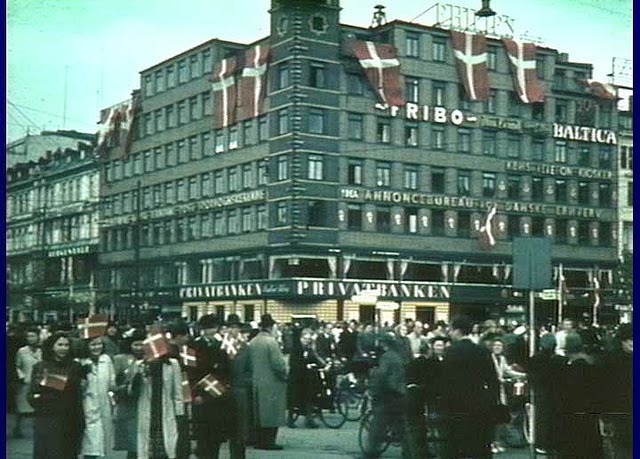 | Dannebrog (the Danish flag) at Danas Plads in Copenhagen. 5th May 1945. |