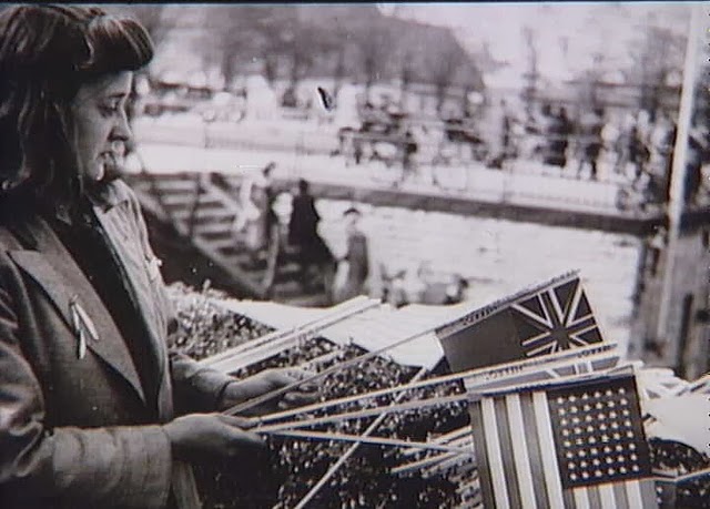 | Woman selling flags at Langelinje, Copenhagen. May 1945. |