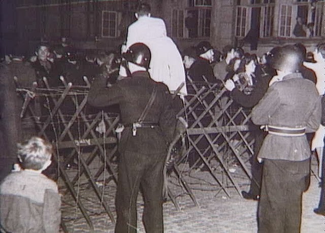 | The police clearing Nørrebrogade in Copenhagen during the strike in 1944. |