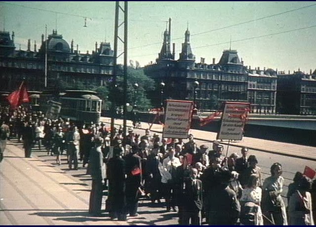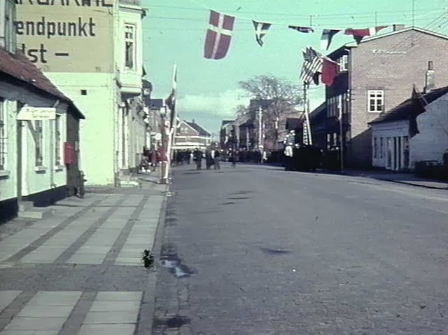 | Flags at Vesterbrogade in Copenhagen. The king's birthday, 26th September 1945. |