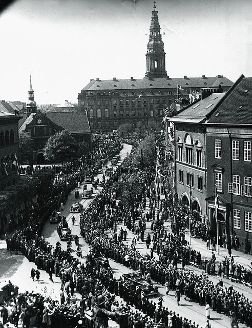 | People celebrating the liberation of Denmark. 5th May 1945. |