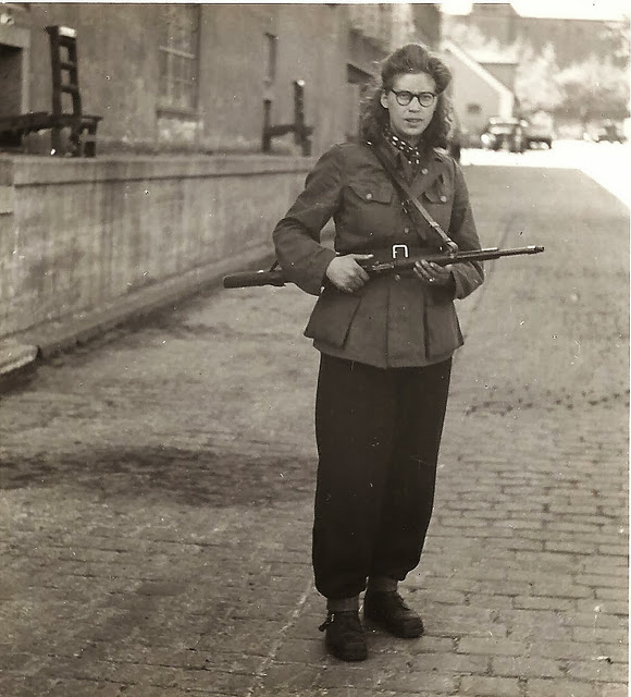 | Woman freedom fighter with rifle at the Carlsberg Breweries. May 1945. |