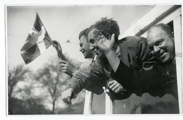 | The police on their way to Sweden, returning from concentration camp in Germany. 1945. |