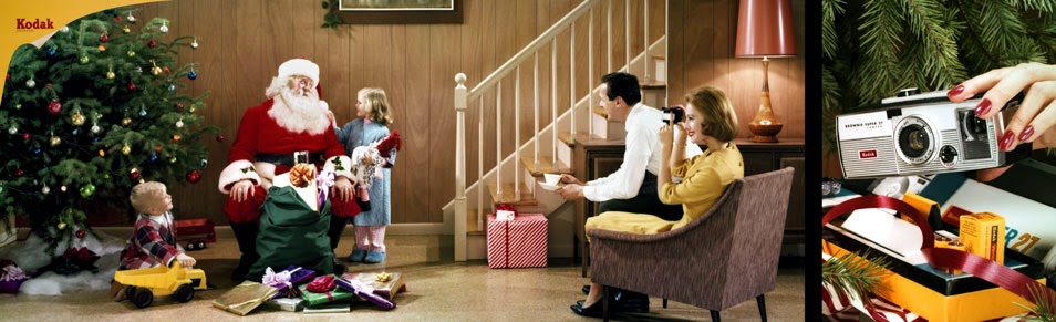 | Family with Santa & tree, Brownie Super 27 camera, displayed November 19-December 17, 1962. Photo by Donald Marvin © Eastman Kodak Co. Courtesy George Eastman House. |