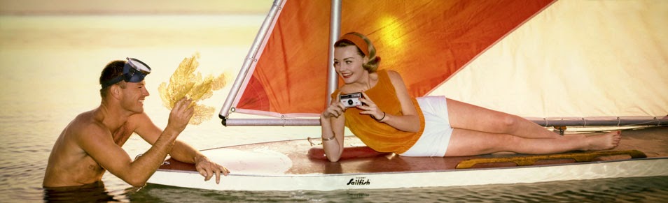| Couple and sailboat, Biscayne Bay, Miami, displayed January 29-February 19, 1968. Photo by Norm Kerr © Eastman Kodak Co. Courtesy George Eastman House. |