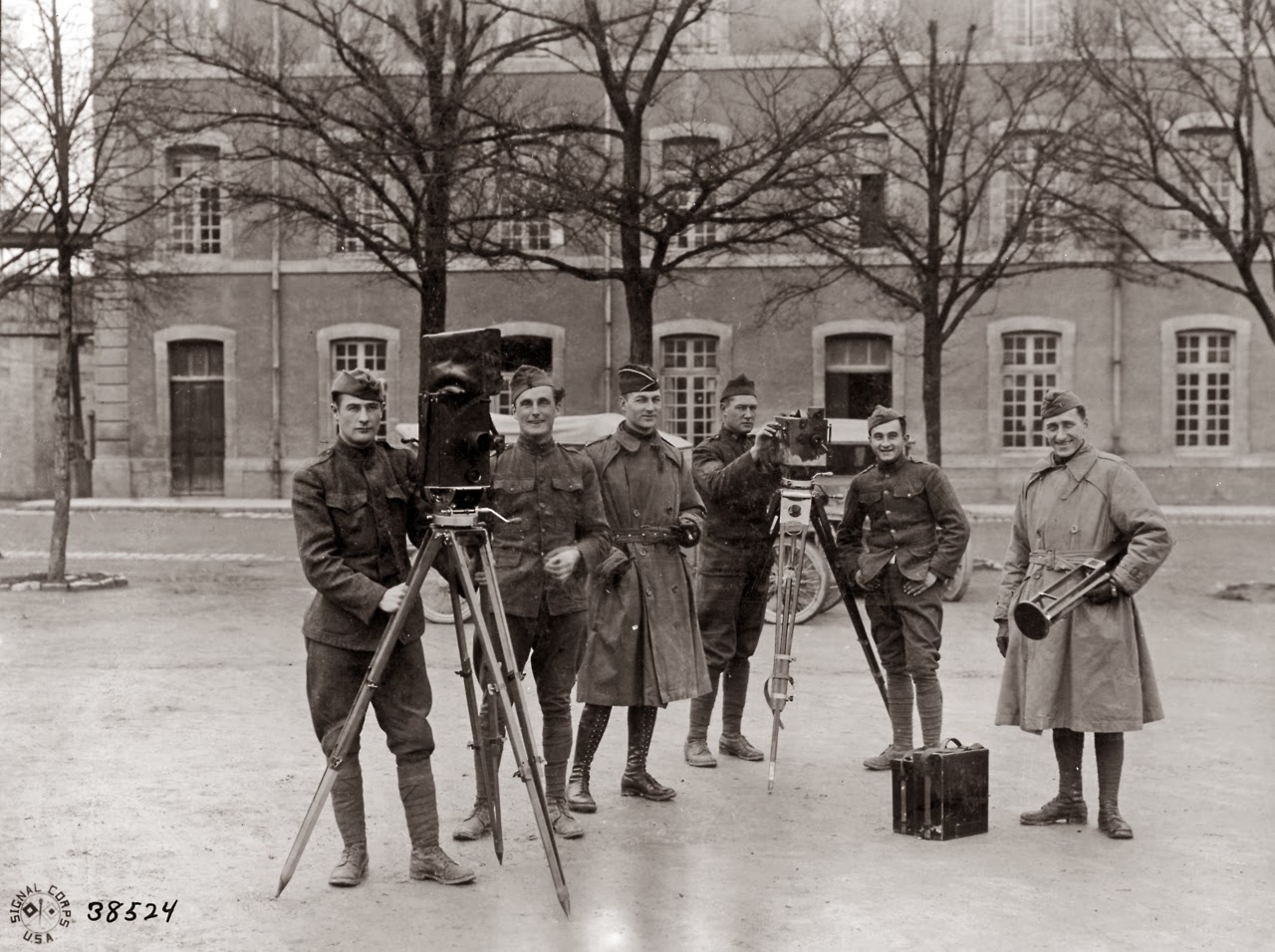 | French photographers making pictures of French and American soldiers. Photographer: Sgt 1st cl. J. T. Seabrook, S.C. Location: Gondrecourt-Sur-Meuse, France. Date: September 9, 1918. |
