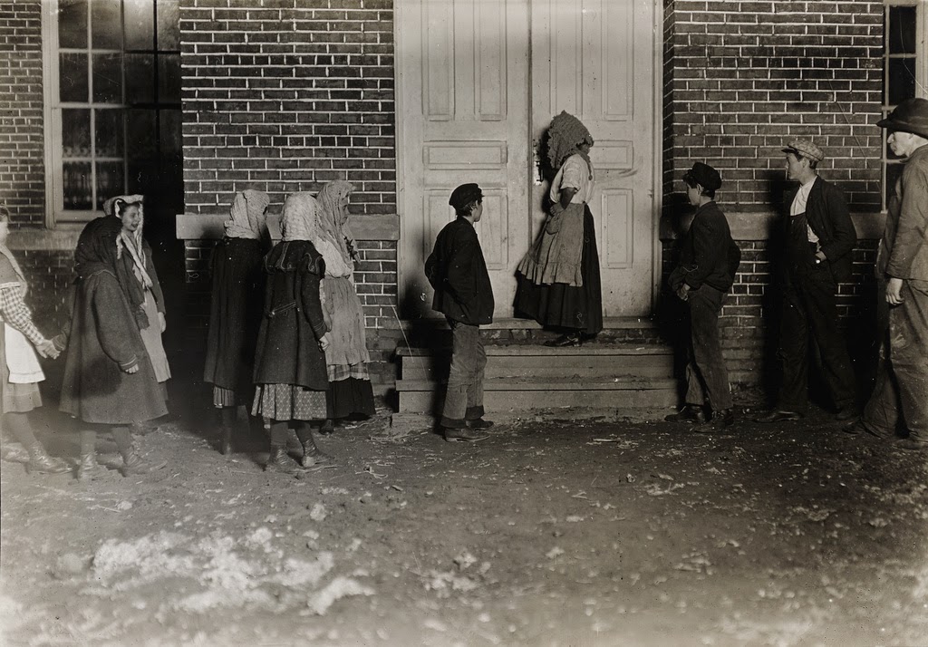 | Boy with coat in hand is 11 years old. Been there 9 months. Started at 50 cents a day. Now gets 60 cents. Gastonia, North Carolina, USA 1908. |