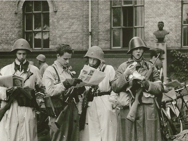 | Freedom fighters at Strandboulevarden in Copenhagen. 5th May 1945. |