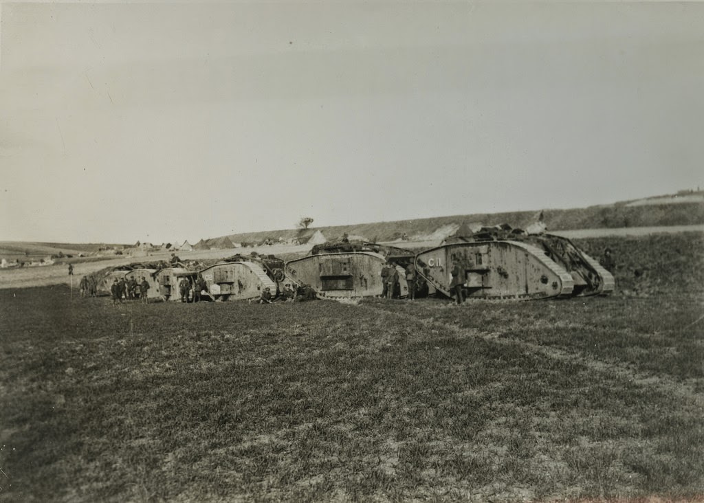 | The German offensive - Tanks waiting for orders, 1914. |