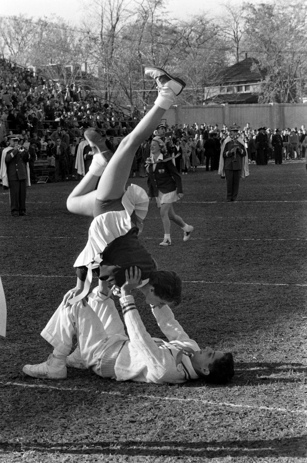 | Cheerleaders at Canadian college football game, 1954. |