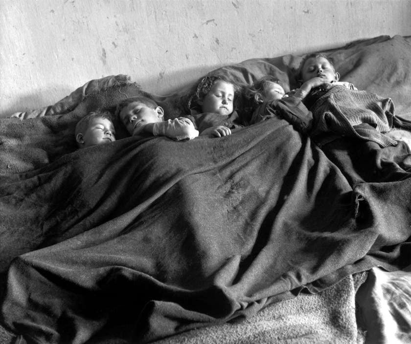 | Near Budapest. In the children's detention room at the headquarters station of the Women's Police Corps, a boy in blankets waits while his clothes are deloused. He has been found in the streets, in need of care. Another boy brought in from the streets on a petty offence, plays ball. |