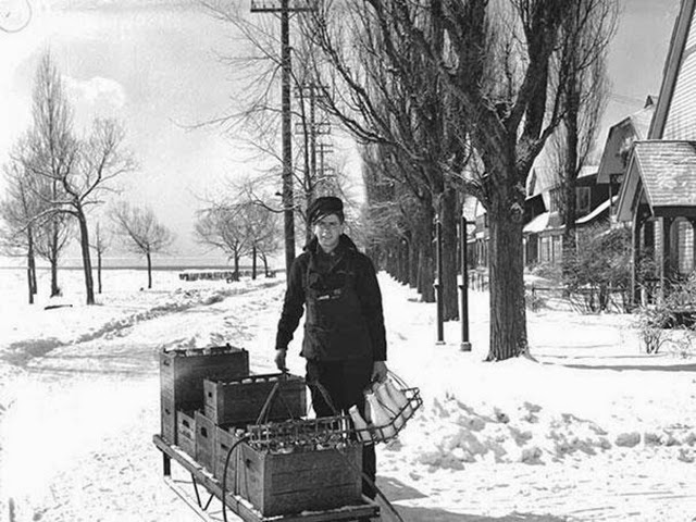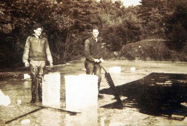 Before modern refrigeration techniques became widespread, ice cutters would saw up the ice on frozen lakes for people to use in their cellars and refrigerators. It was a dangerous job often done in extreme conditions.