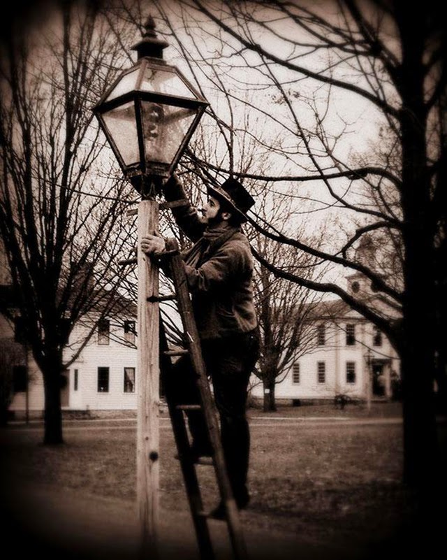 Lamplighters used long poles to light, extinguish and refuel street lamps – until electric lamps were introduced