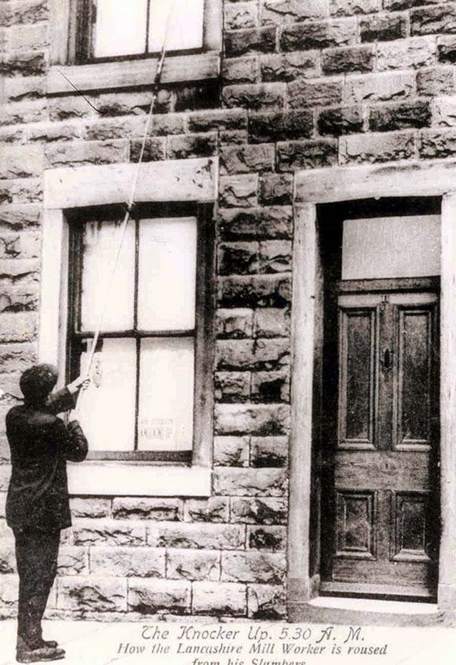 Knocker-uppers were essentially alarm clocks – they were hired to ensure that people would wake up on time for their own jobs. They would use sticks, clubs or pebbles to knock on clients’ windows and doors.