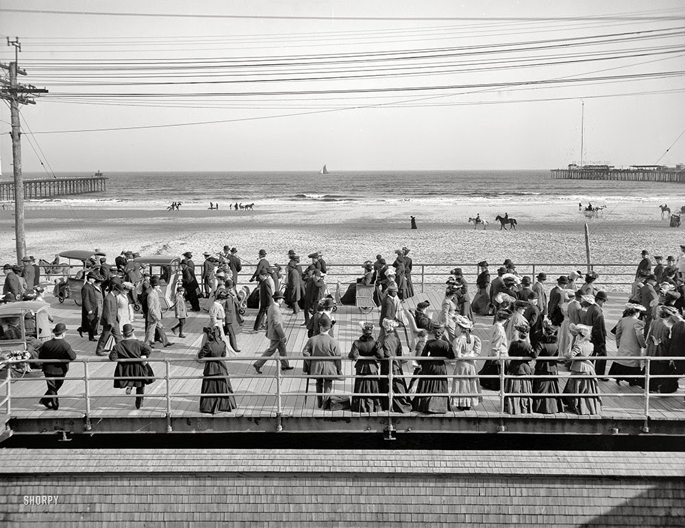 | The Jersey Shore circa 1908. On the Boardwalk, Atlantic City. |