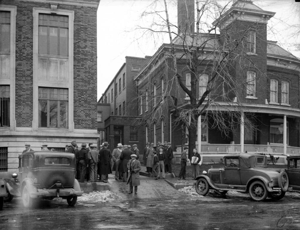 | The Crown Point, Indiana, Jail house, right, and County Courthouse, left, after John Dillinger escaped with only a toy gun on March 3, 1934. Dillinger threatened deputy sheriffs with a wooden gun and then locked up more than a dozen guards before fleeing in the sheriff's own car. — Chicago Tribune historical photo |