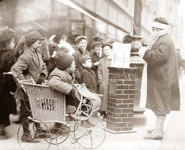 1900 - Santa Claus greets children in New York City.