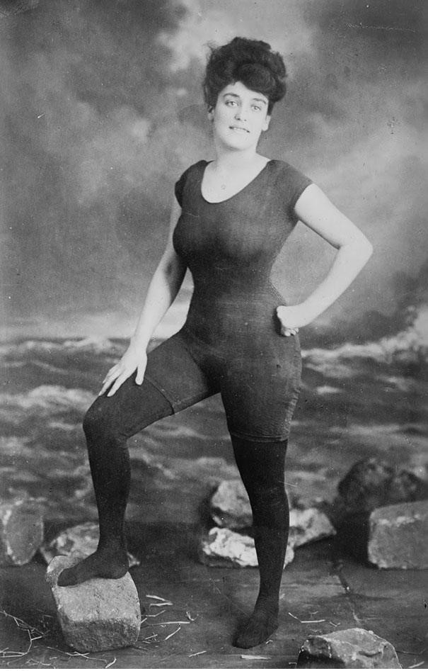 She was the first woman to wear a one-piece suit instead of the traditional pantaloons. She was arrested for indecency, but inspired many women to follower her example. Kellerman is often credited for inventing synchronized swimming.