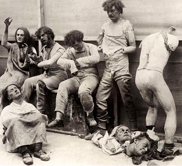 1930 - Mannequin's damaged after a fire in Madame Tussaud’s Wax Museum in London.