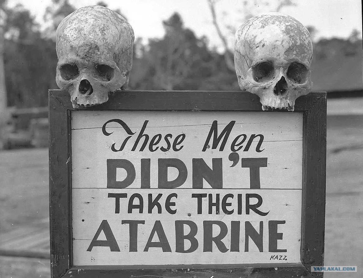 Malaria was one of the biggest killers of people in the region who weren’t involved in direct conflict. It was easily spread through mosquito bites and spread rapidly. Atabrine had many side effects, though, like turning the skin yellow, but it was extremely effective in combating malaria.
