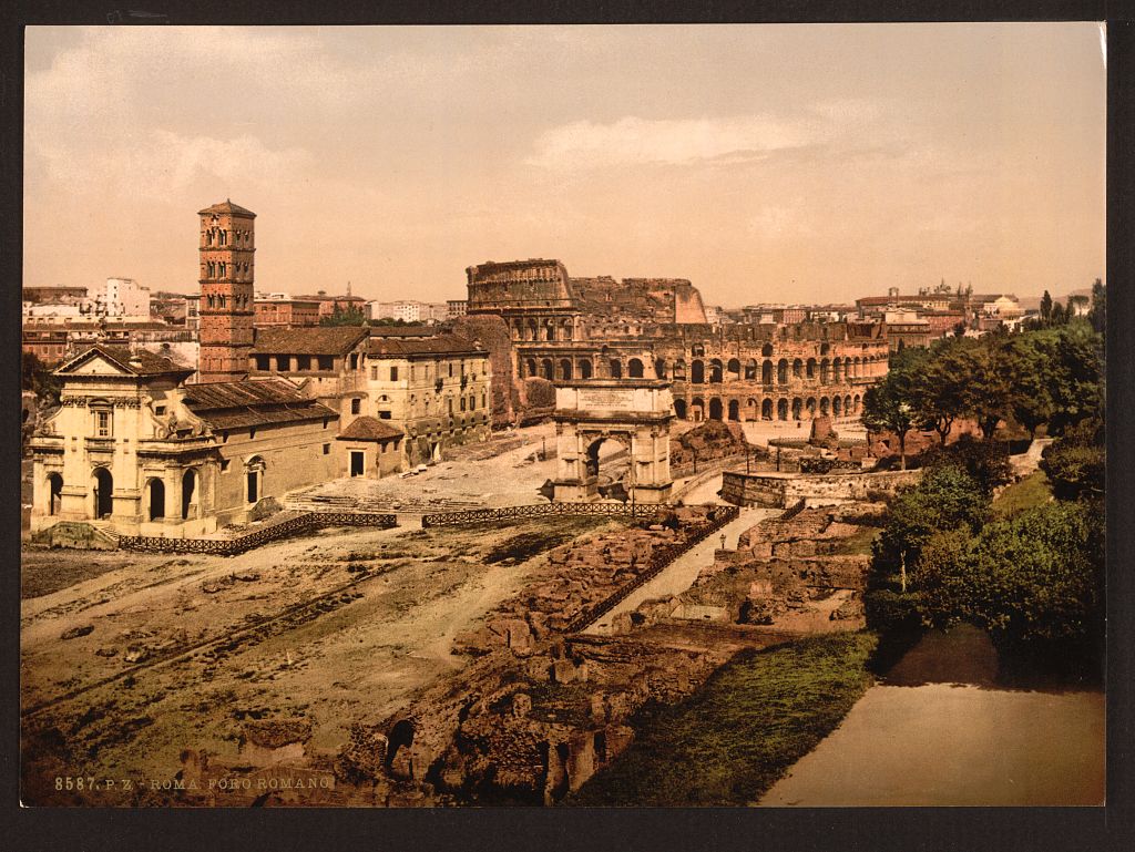 These postcards of the ancient landmarks of Rome were produced around 1890 using the Photochrom process, which add precise gradations of artificial color to black and white photos.