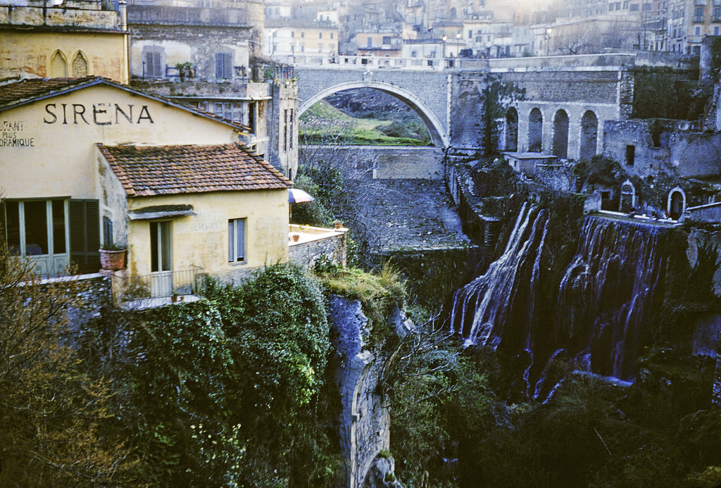 | Via Ponte Gregoriano & Sirena Hotel from the Sibilla Restaurant,Tivoli, Italy |