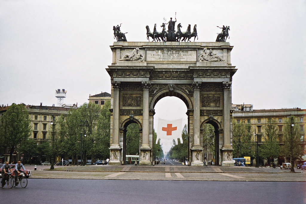 | The Flag of Milan under the Arco della Pace - Porta Sempione, Milan |