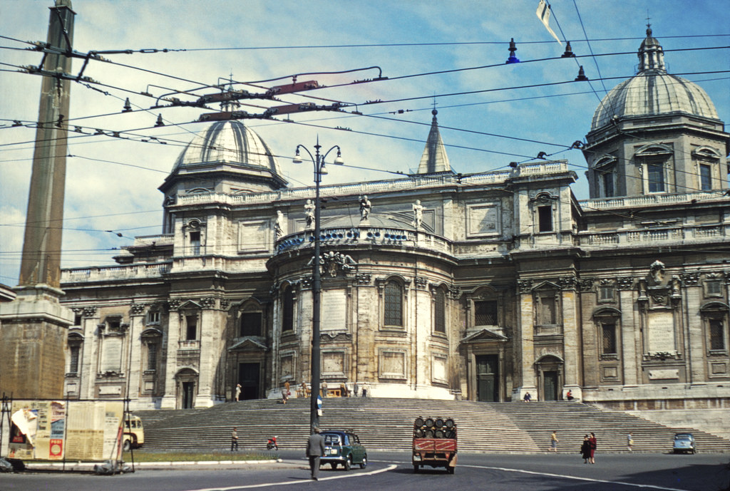 This is a set of Kodachrome slides documenting a tour of Italy undertaken around 1955 and 1956 by a couple and a young woman who are all Americans and traveled to Europe on the SS Independence.