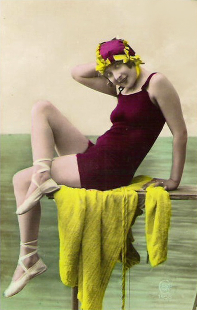 Here below is a collection of colorized vintage photos that shows young girls in their swimsuits during the 1920s.