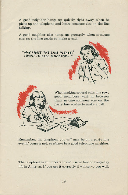 This booklet The Telephone and How We Use It, published in 1951 by Bell Telephone System, was a beginner course in telephone use. Targeting elementary school students, it covers everything from basic use to emergency calls and proper etiquette.