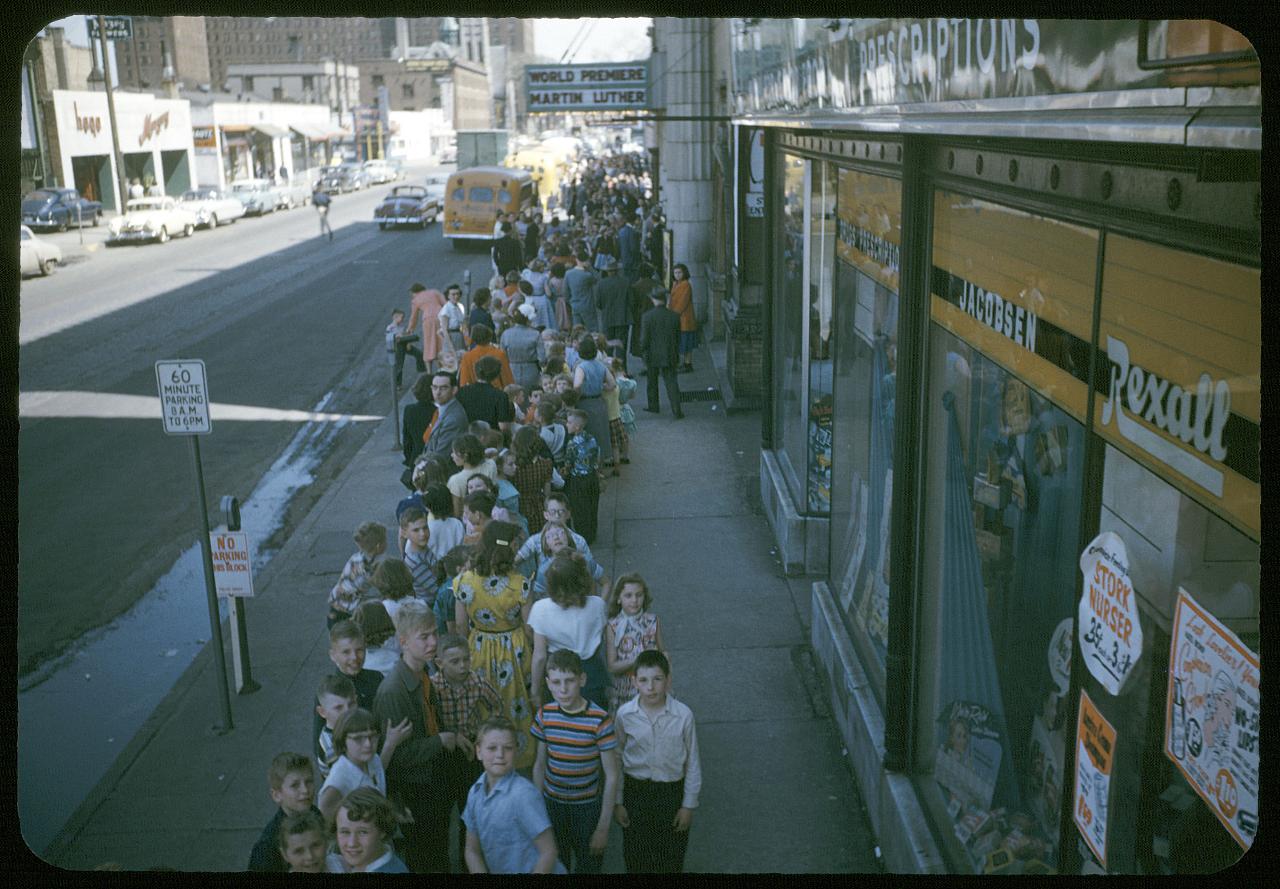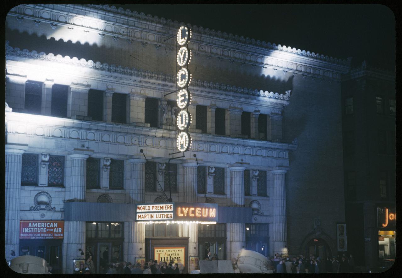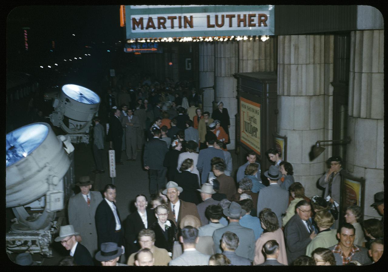 These color slides show images of the Martin Luther motion picture world premiere at Lyceum Theater, Minneapolis, Minnesota, 1953.