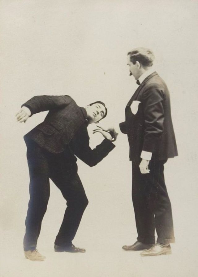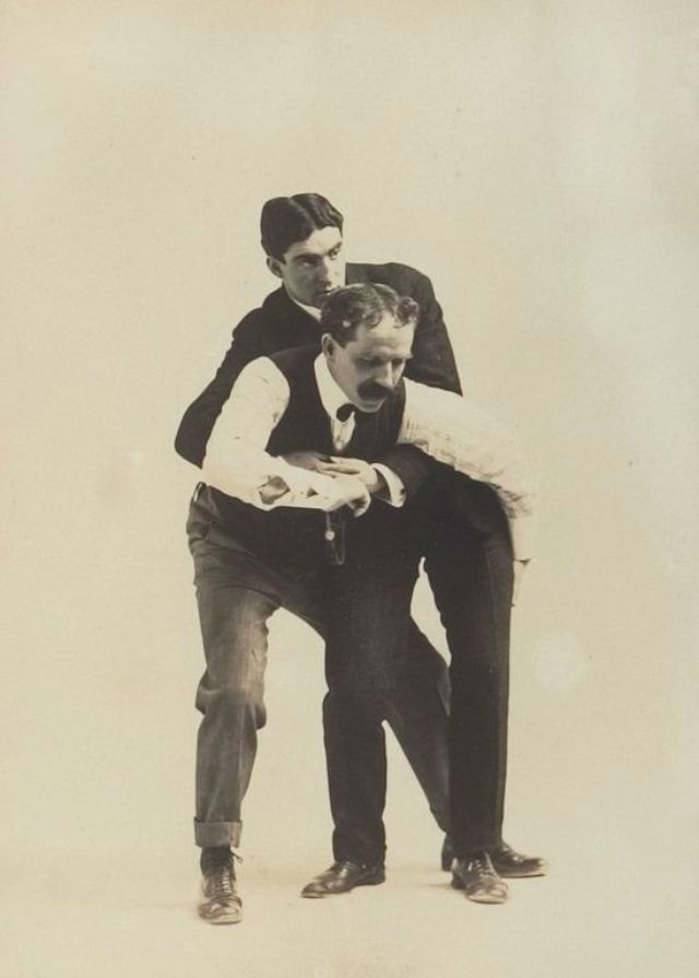 These images come from an untitled album from circa 1895, which catalogued numerous maneuvers a person can use if suddenly engaged in hand-to-hand combat.