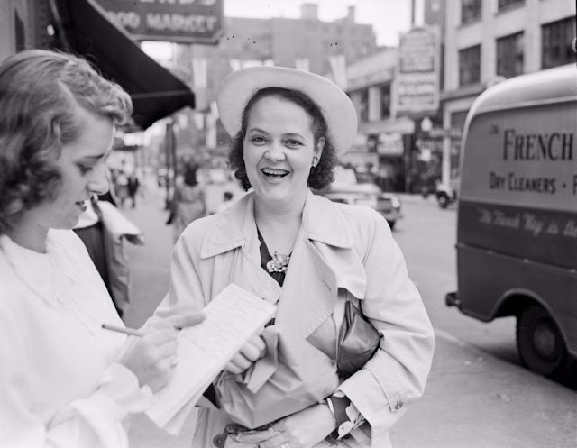 A rare found photo collection form Brian Delk that shows images of a young beautiful reporter of The Des Moines Register who was interviewing people in June 21st, 1948.