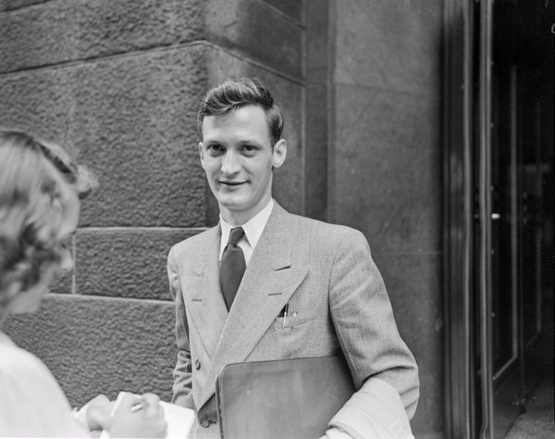 | Portrait of unknown beautiful reporter of The Des Moines Register who was interviewing people in June 21st, 1948. |