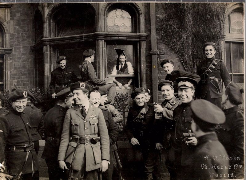| Tans glad to have escaped the bombs thrown at their headquarters in Dublin, 11 April 1921 |