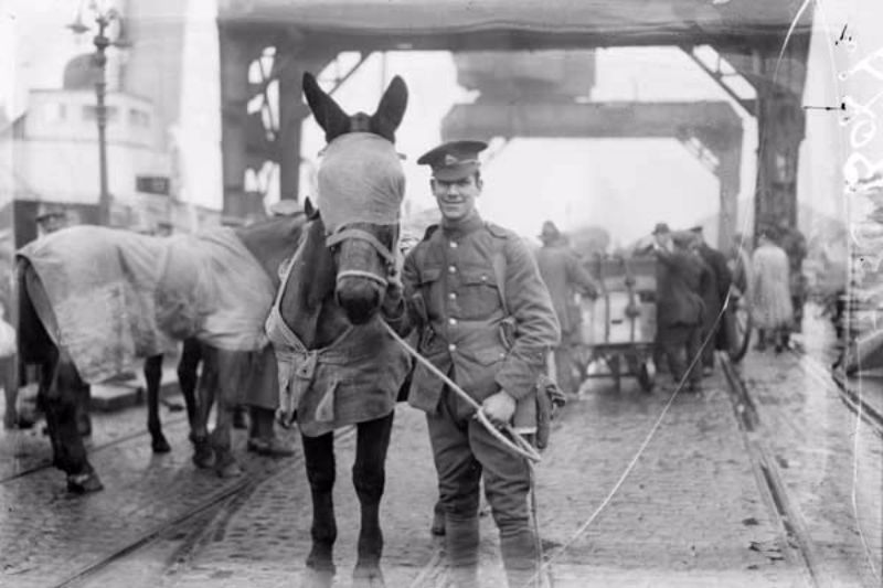 | Soldiers of a British cavalry regiment prepare to leave Ireland with their horses at North Wall, Dublin, 1922 |