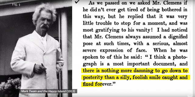 Back in the Victorian era, for instance, the cost of pictures meant that you’d only have your photo taken once or twice in a lifetime. Mark Twain thought as much. In one of his letters, collected by Jeeves, he wrote: