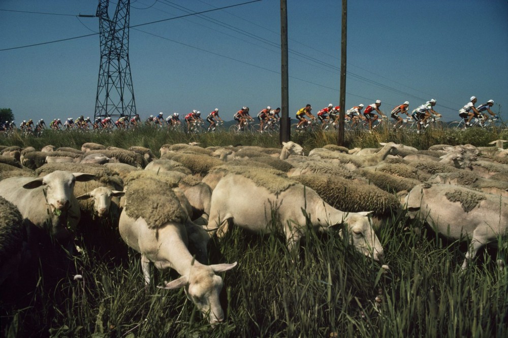 It’s no real surprise that many Magnum photographers have worked in or around a bicycle race like the Tour de France at some point of their careers, because as sports go, cycling provides a perfect situation for the reportage, social documentary or street photographer: it happens in real-time, in real life and in the public environment. It isn’t a traditional stadium or circuit sport per-se, as the action happens on the street outside your house or in a city centre that you live in or in the mountains that you holiday beside, because anywhere the road goes so does the racing peloton.