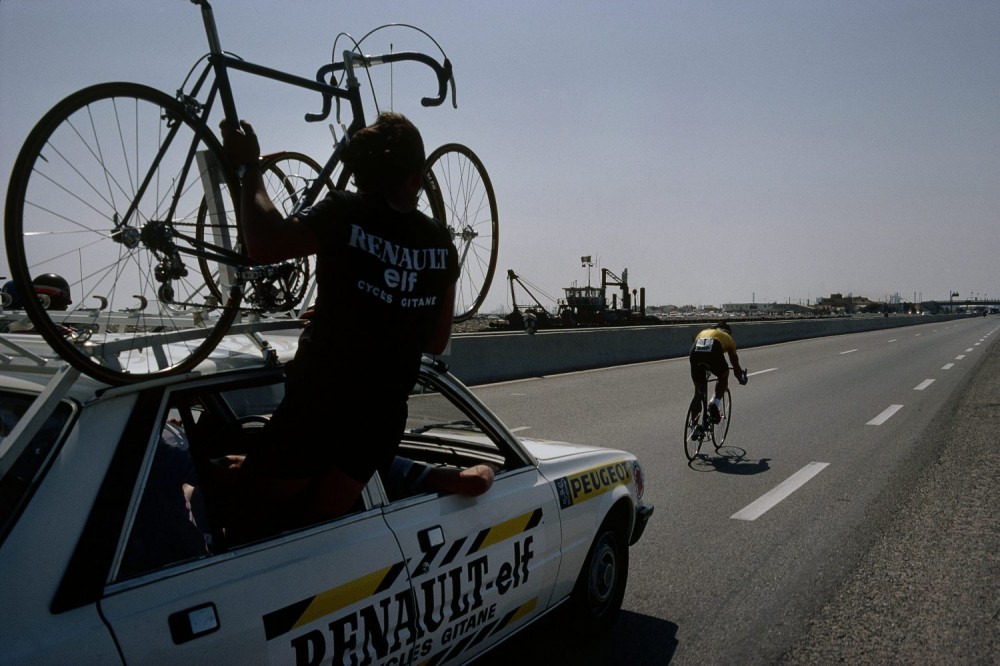 Harry Gruyaert’s approach to photographing the Tour was fairly pragmatic at the time. In 1982, he was there to do a job for the Elf oil company and the resulting work became a big reportage exhibited in Paris and in a book, but once